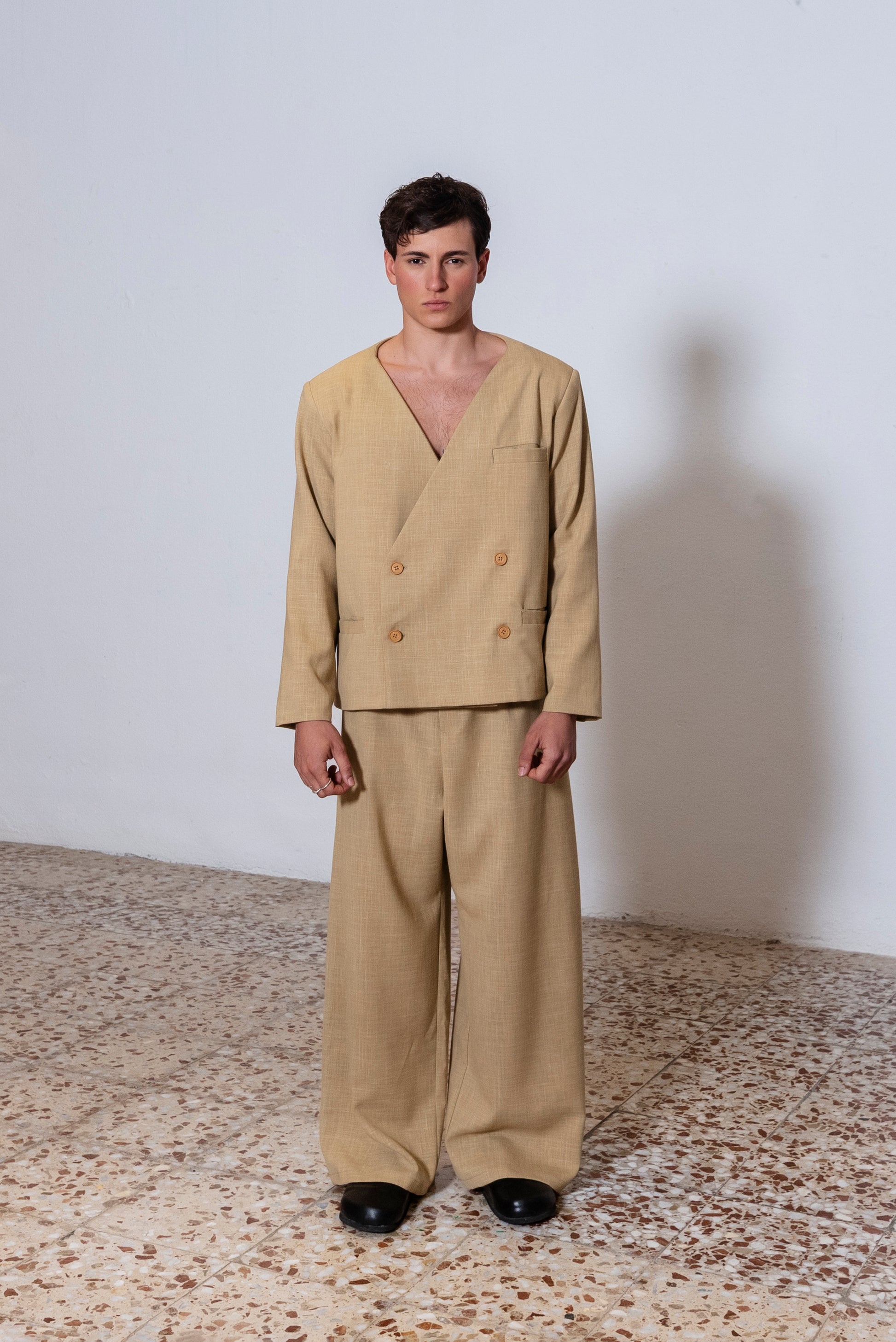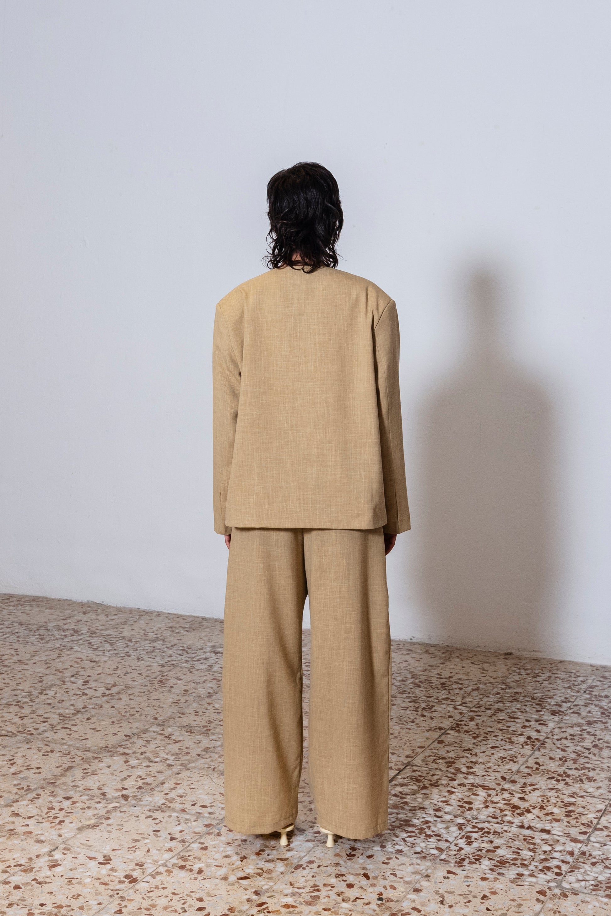 Americana confeccionada en lana fría de caída fluida y tacto suave. De manga larga y largo por encima de la cadera, es una prenda ligera, elegante y versátil, ideal para entretiempo o para llevar todo el año.