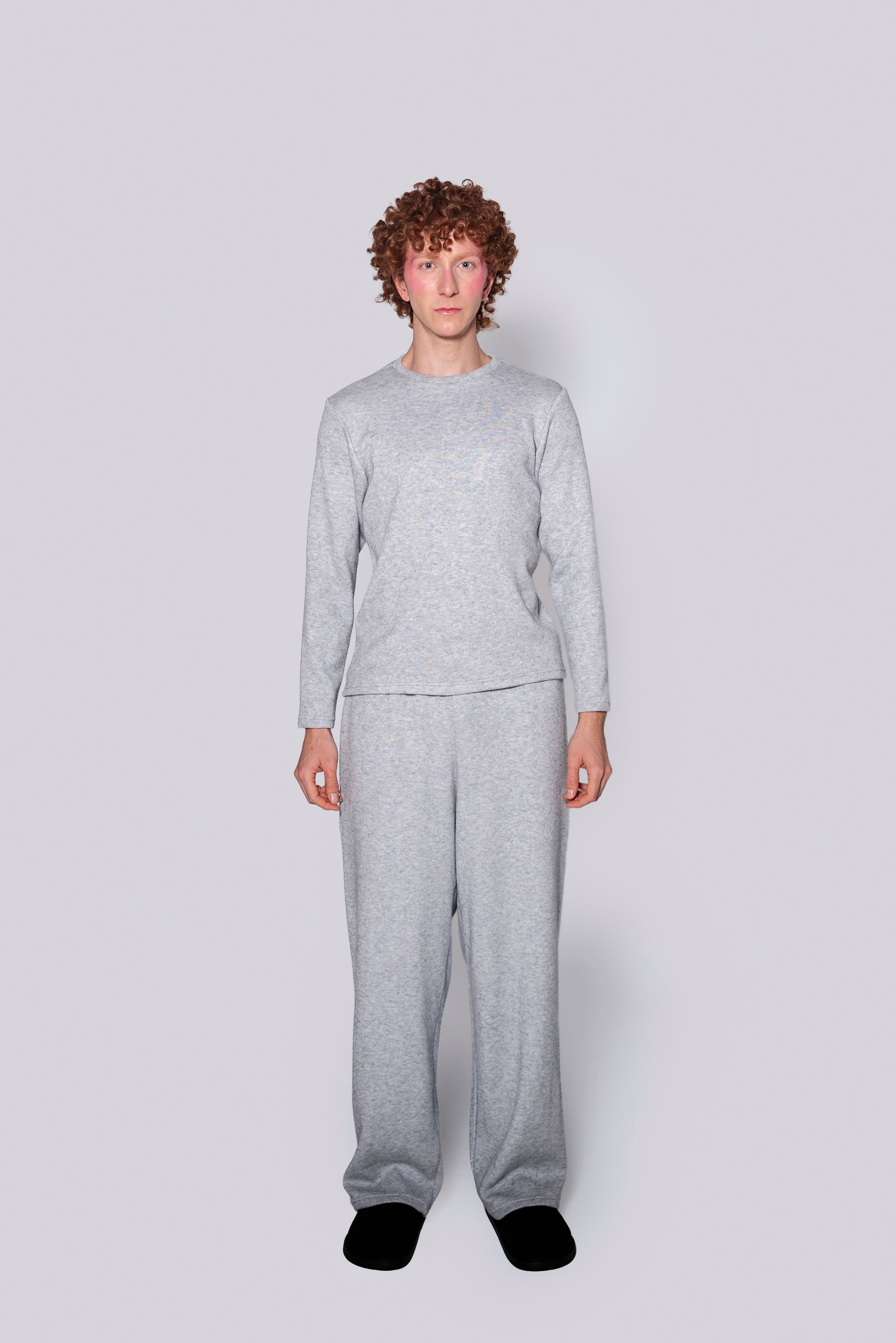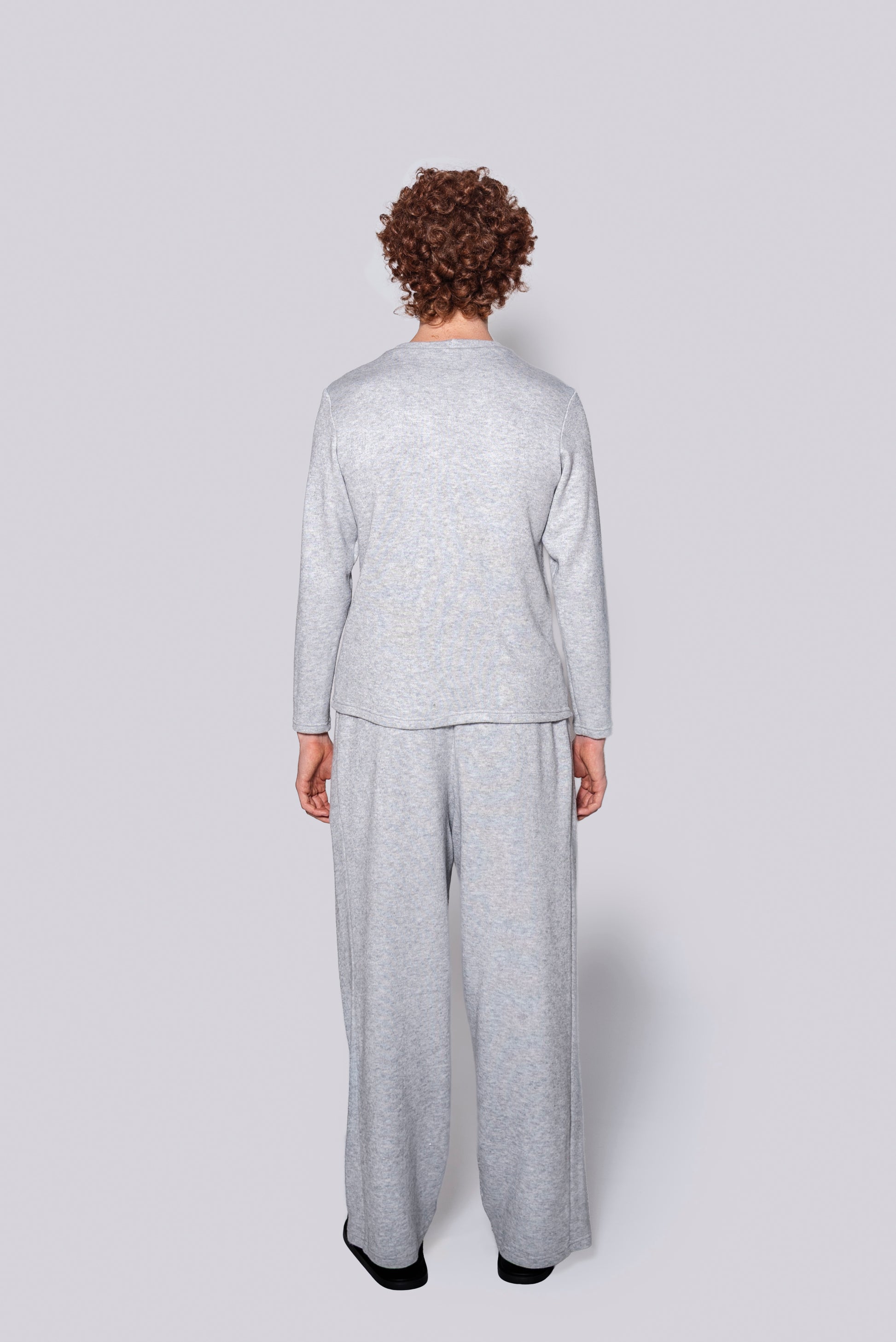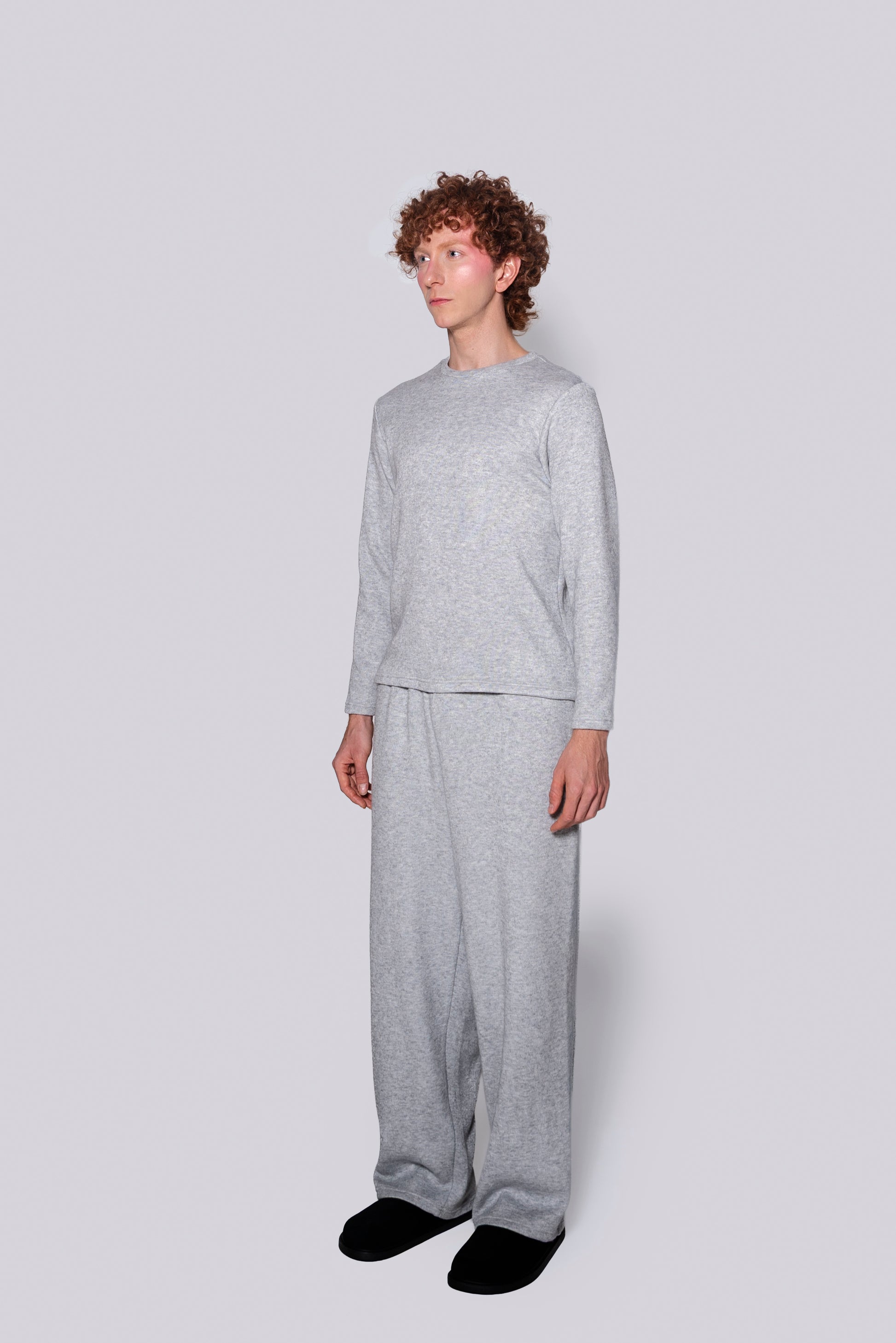 Pantalón largo de punto en tono crudo, diseñado para ofrecer la máxima comodidad y versatilidad. La cinturilla elástica cuenta con un cordón para ajustar a tu medida, adaptándose fácilmente a distintas tallas. Incluye bolsillos laterales ocultos en las costuras, que aportan un toque práctico sin comprometer el diseño limpio y atemporal.