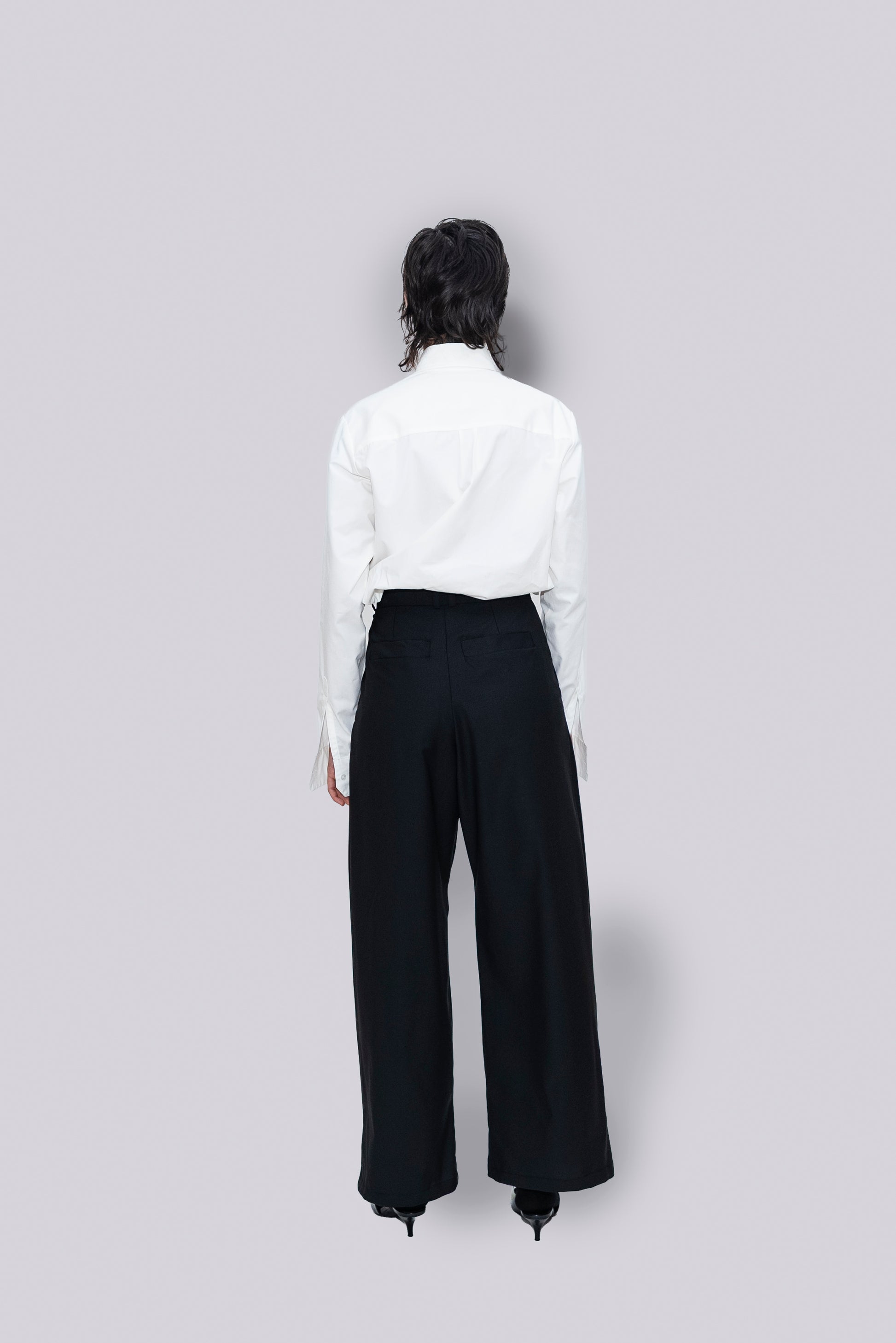 Pantalón confeccionado en lana fría de caída ligera y tacto suave. Su corte recto y relajado aporta elegancia y comodidad, convirtiéndolo en una prenda esencial tanto para el día a día como para ocasiones más formales.