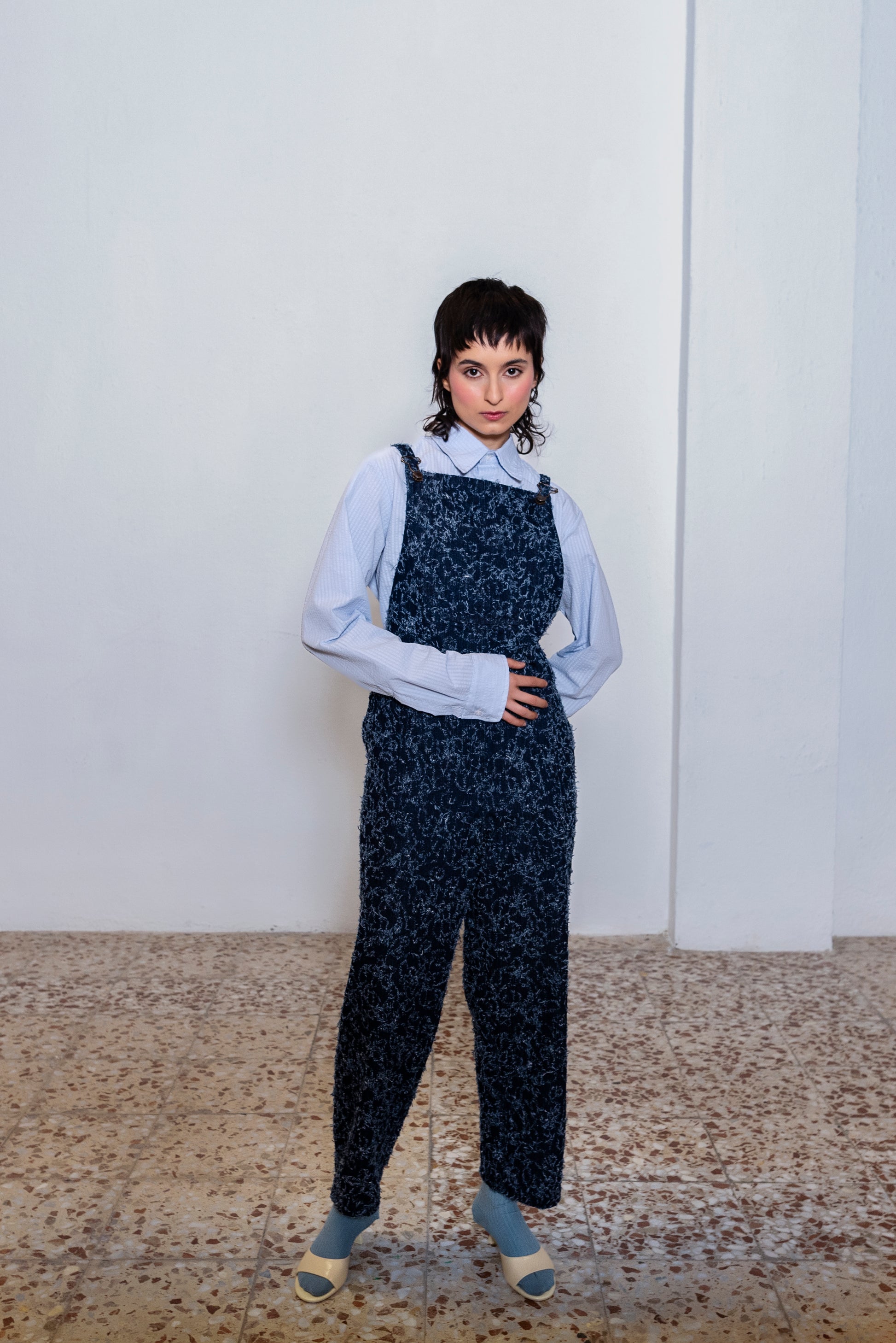 Peto vaquero de corte clásico, diseñado para adaptarse a diferentes siluetas gracias a sus tirantes regulables y a la discreta goma en la cintura. Cuenta con un bolsillo en el pecho, dos bolsillos delanteros y dos bolsillos traseros, combinando funcionalidad y estilo en una prenda versátil y atemporal.