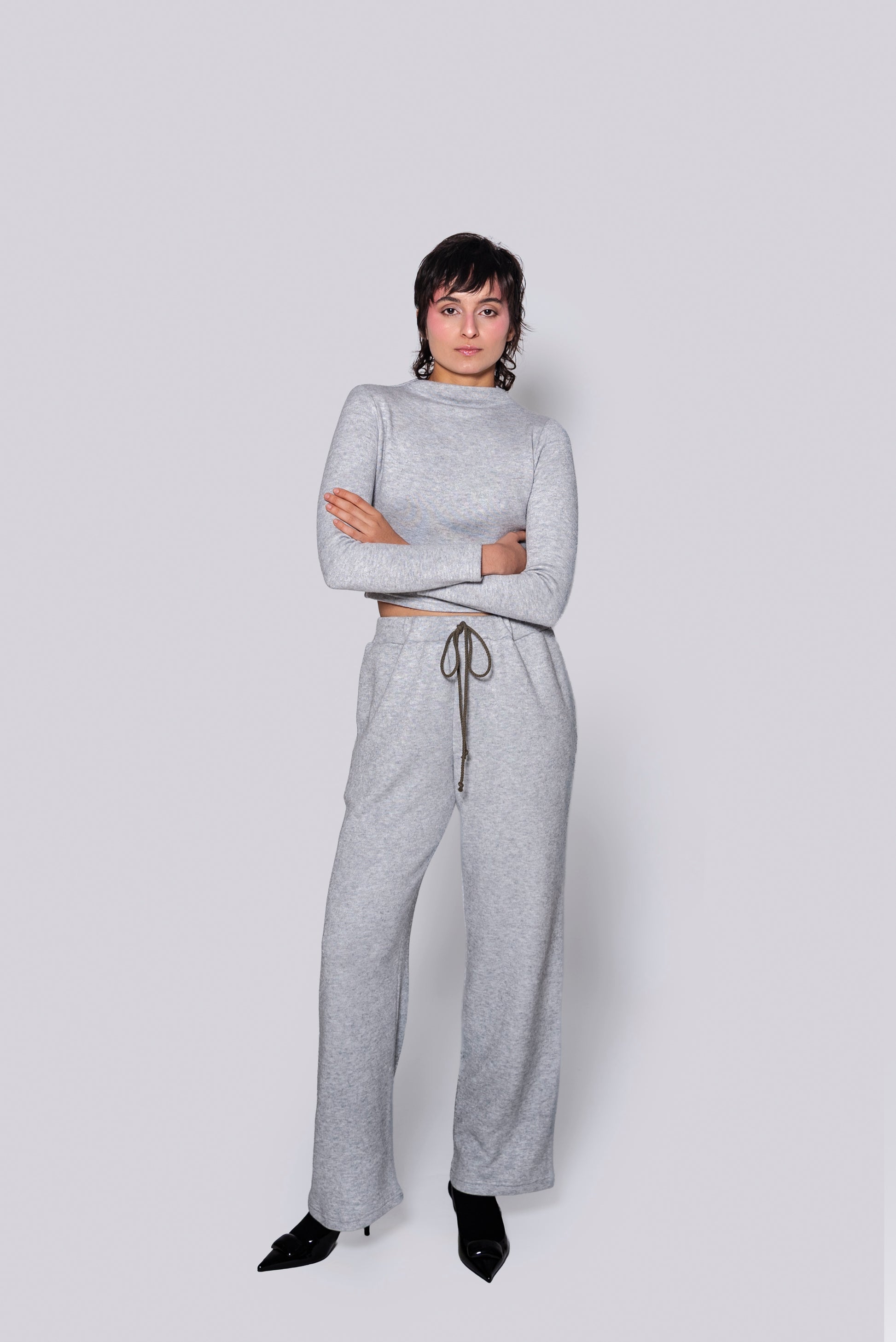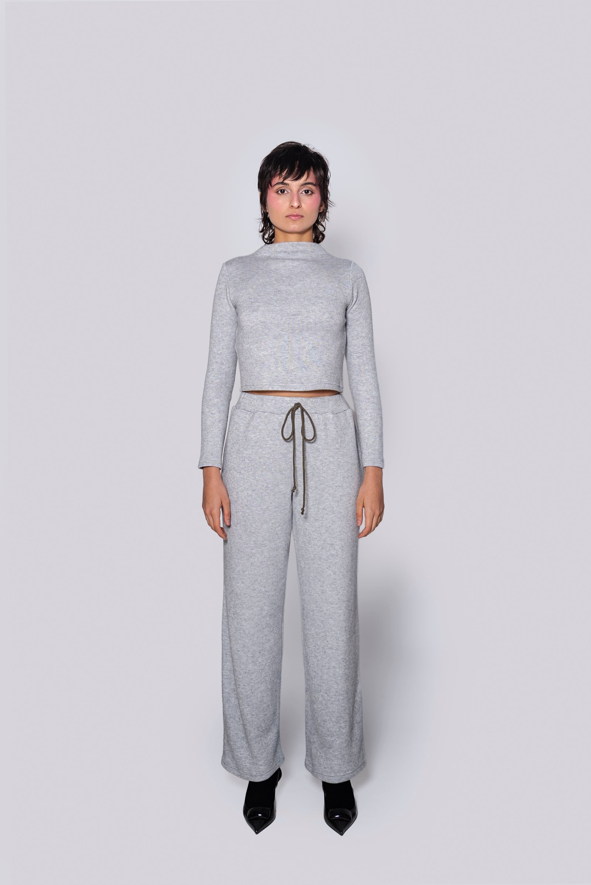 Camiseta corta de punto con cuello semi alto y silueta ajustada. Su diseño minimalista realza la figura y aporta un aire contemporáneo y versátil, ideal para combinar con prendas de tiro alto o para superponer bajo chaquetas y americanas.